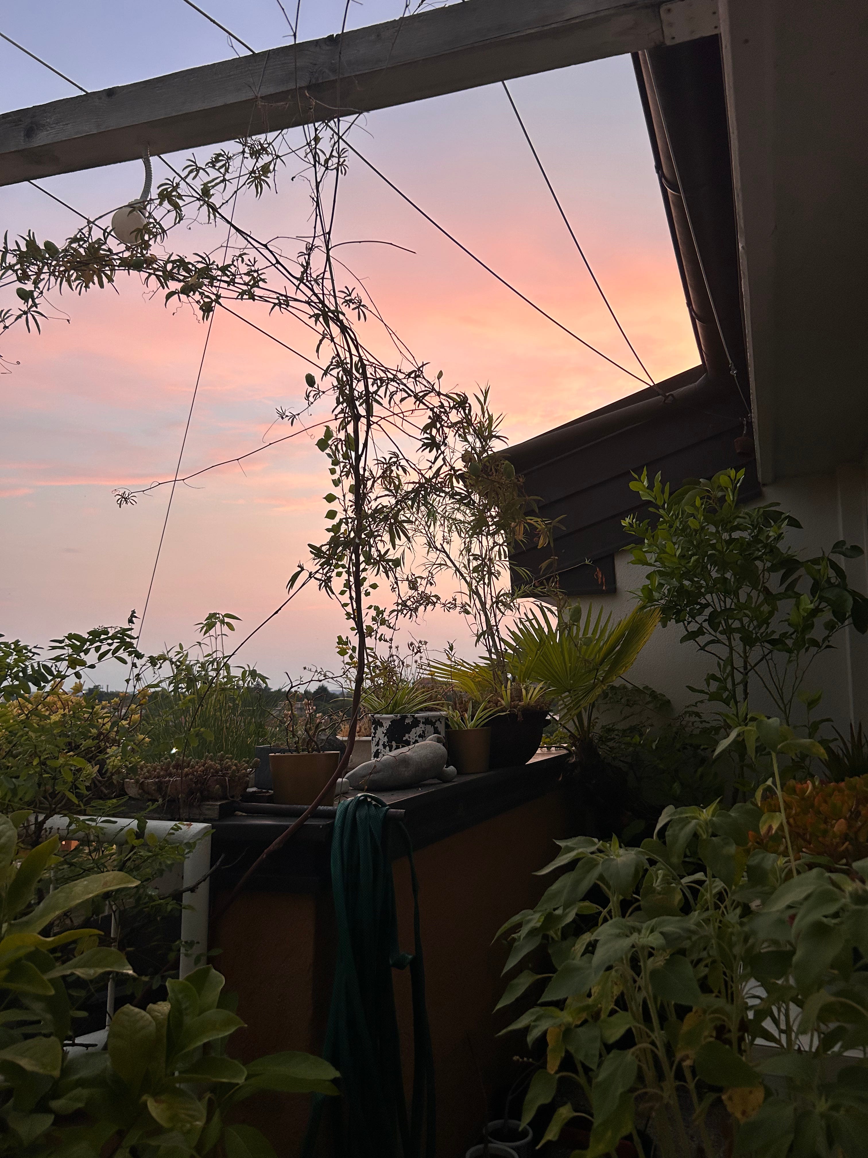 It’s been over six months since I moved out of the Cosmos’ Cabin. During this time, nature went from exploding with fruit and fragrance into fiery shades of yellow and orange, all the way to sinking back into the depths of the earth to rest. Now, I watch her change from a city balcony. The sunsets are beautiful here too.